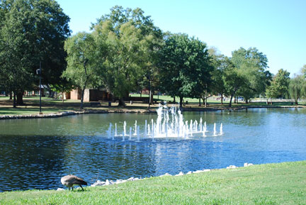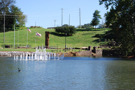 The lake features a memorial water fountain dedicated to the memory of Princess Im-Mi-Ah-Key the wife of Chief Tuscumbia. There are 51 jets that make up the fountain. The center jet shoots water in excess of 100 feet into the air and the other 50-shoot water 40-50 feet into the air. All jets are choreographed to lights and music.